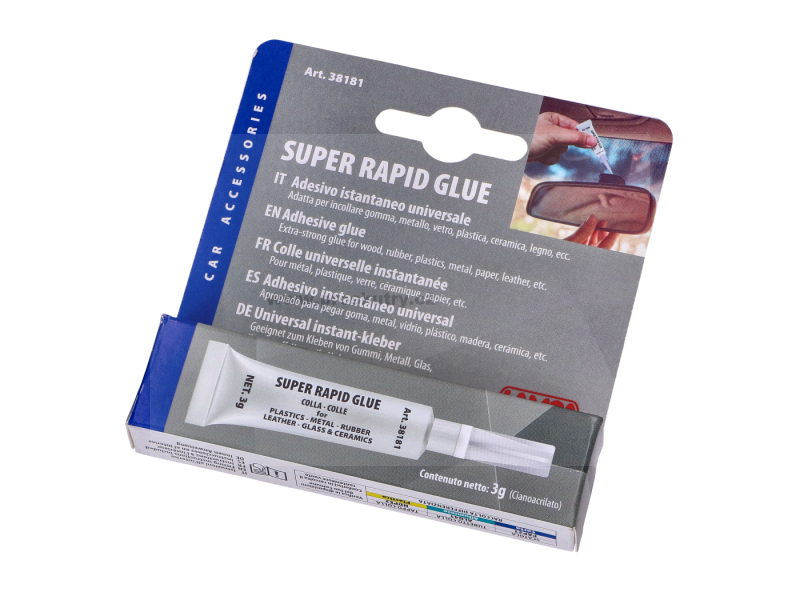 Super rychlé lepidlo Lampa. Toto univerzální sekundové lepidlo lze použít na pryž, kov, sklo, plast, keramiku a dřevo.
