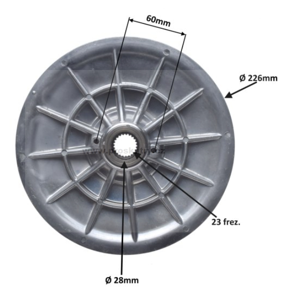 Spojka je vhodná jako náhrada originálního dílu (OEM) při opravě opotřebeného nebo poškozeného variátoru. Robustní konstrukce zajišťuje spolehlivý záběr, plynulý chod a dlouhou životnost i při náročném provozu v terénu nebo při pracovním zatížení.