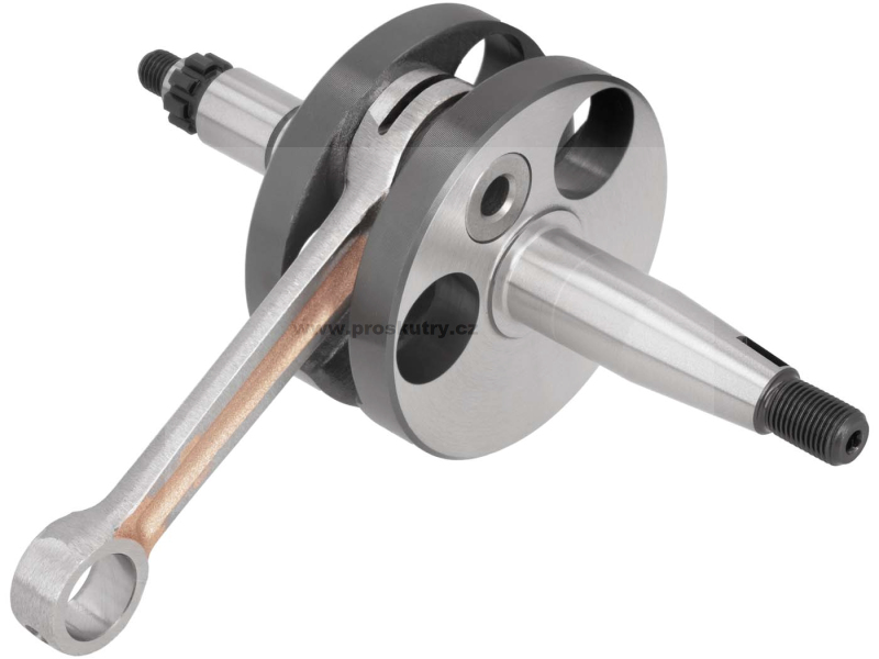 Standardní kliková hřídel vhodná pro mopedy Puch MS, MV, MV50, Puch X30 Velux s dvoustupňovou převodovkou a ručně řazenými motory Z50 chlazenými ventilátorem.