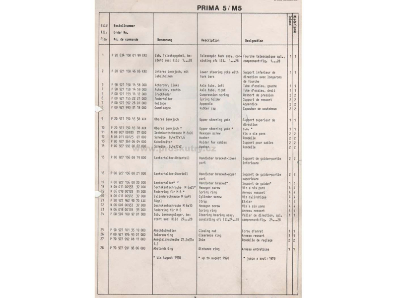 Teleskopická vidlice Pränafa z pružinové oceli 150 mm, 17 mm, 24 mm, 3,4 mm, pro Hercules M 1 Typ 506M, 2 504M, 5 634 001, P 505P, Prima 2N, 2S, 3S, 4