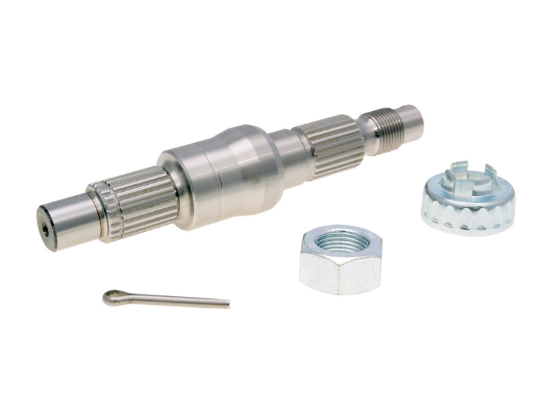 transmission output shaft 143mm incl. nut, crown nut, splint pro Piaggio, Vespa 125, 150cc 2-takt (-1999)