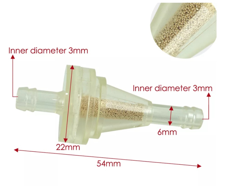 Univerzální palivový filtr pro ATV, čtyřkolky, motocykly a jiné stroje s benzínovým motorem — montuje se přímo do palivové hadičky.