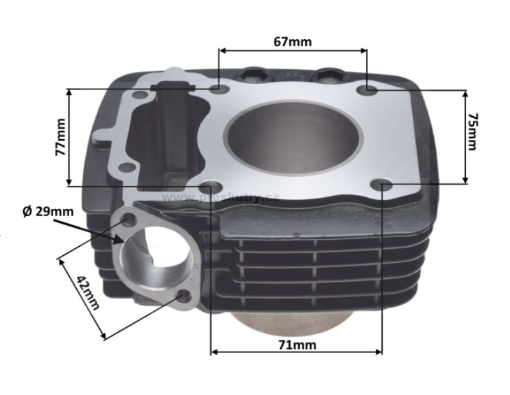 Průměr 57,30 mm zajišťuje perfektní těsnost spalovacího prostoru a správný chod motoru. Válec je určen pro píst s čepem 13 mm – před objednáním doporučujeme srovnat rozměry s původní sadou.