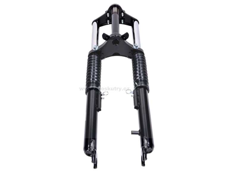 Černá teleskopická vidlice od EBR vhodná pro různé mopedy, skútry nebo mokicky značek Hercules a Sachs.