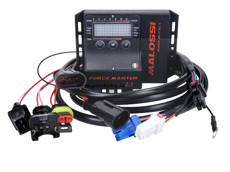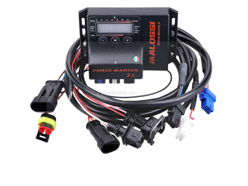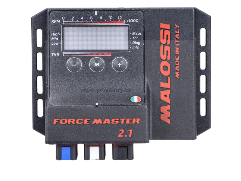 Ovladač Force Master 2.1 má zcela nový vzhled a jeho konfigurace je mnohem jednodušší. S rozhraním pro komunikační linky K a CAN, novým uživatelským rozhraním a přidáním kapacitního vstupu zapalování je Force Master 2.1 ideálním doplňkem pro řízení spotřeby vozidla: bez funkčních omezení umožňuje motor překročit. limit původního omezovače otáček pro otáčení.