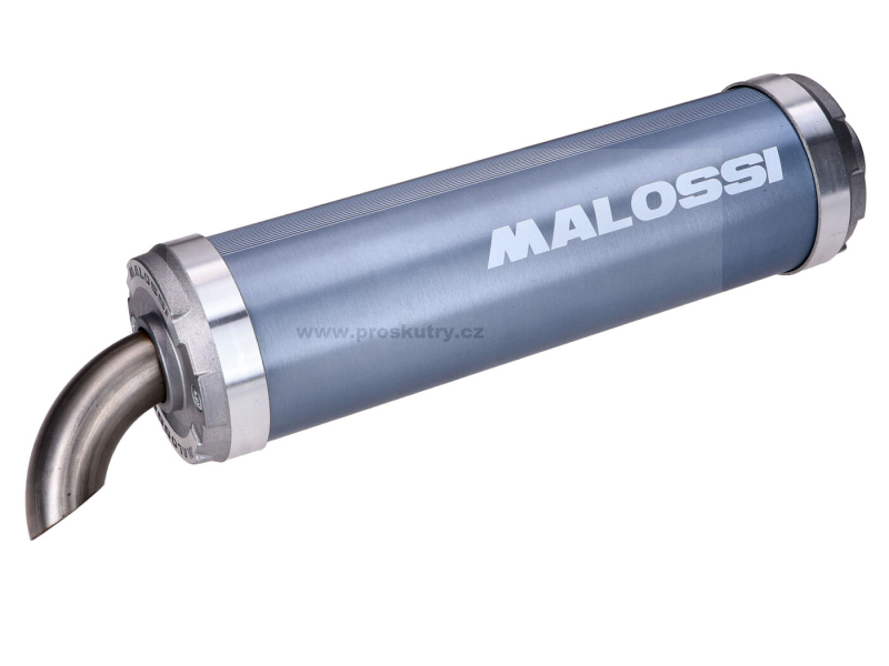 Výfuk Malossi MHR je dodáván se zadním tlumičem vyrobeným z hliníku eloxovaného v nitro modré barvě.
