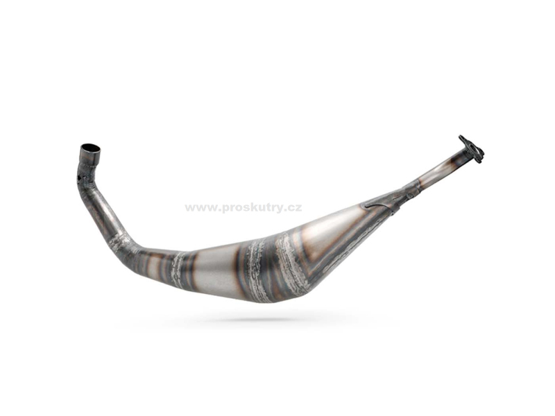 Ručně svařovaný nízko montovaný (spodní) sportovní výfukový systém od Voca Racing bez zadního tlumiče, vhodný pro mopedy s řazením a motory EBE/EBS nebo D50B.