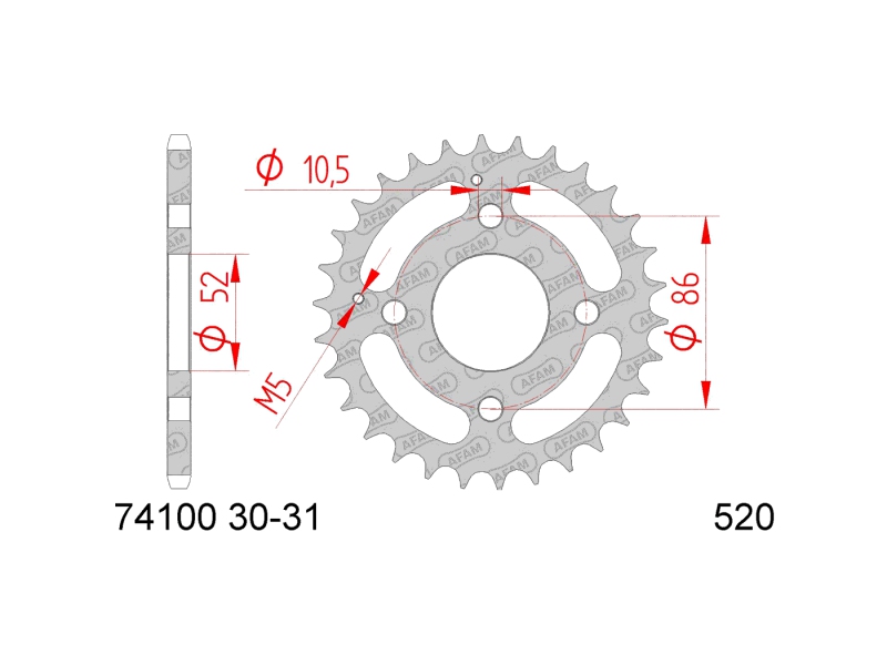 Zadní rozeta AFAM 30z 520 pro Kymco MXer 50, 150, MXU 50, 150