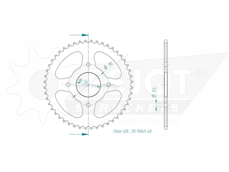 Zesílená rozeta Esjot nejvyšší kvality, vyrobené v Německu výrobcem originálního vybavení pro Hercules/Sachs. Se 48 zuby, vhodné pro Hercules K 125 BW, DKW, KTM, Rixe s motorem Sachs 125 ccm pro typ řetězu 428 - 1/2 x 5/16.
