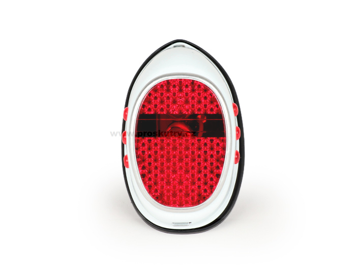 Zadní světlo OEM QUALITY, plechové provedení Hella Moped Repro ’tvar kapky’ s brzdovým světlem pro Puch Maxi, NSU, DKW, Zündapp, Hercules, Goggo-Roll