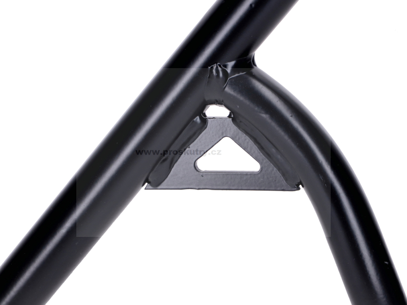 Vzpěry horního rámu jsou dodatečně vyztuženy speciálně svařenými výztužnými deskami, což výrazně zvyšuje pevnost celé zadní části rámu a omezuje jeho kroucení při zatížení.