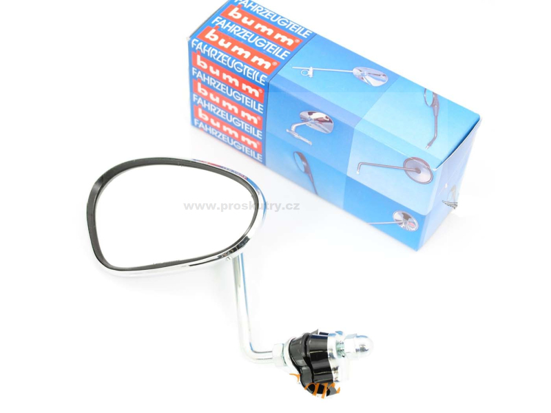 Zrcátko bumm s držákem chrom vlevo pro Vespa, Hercules, NSU, Zündapp, Kreidler, Piaggio
