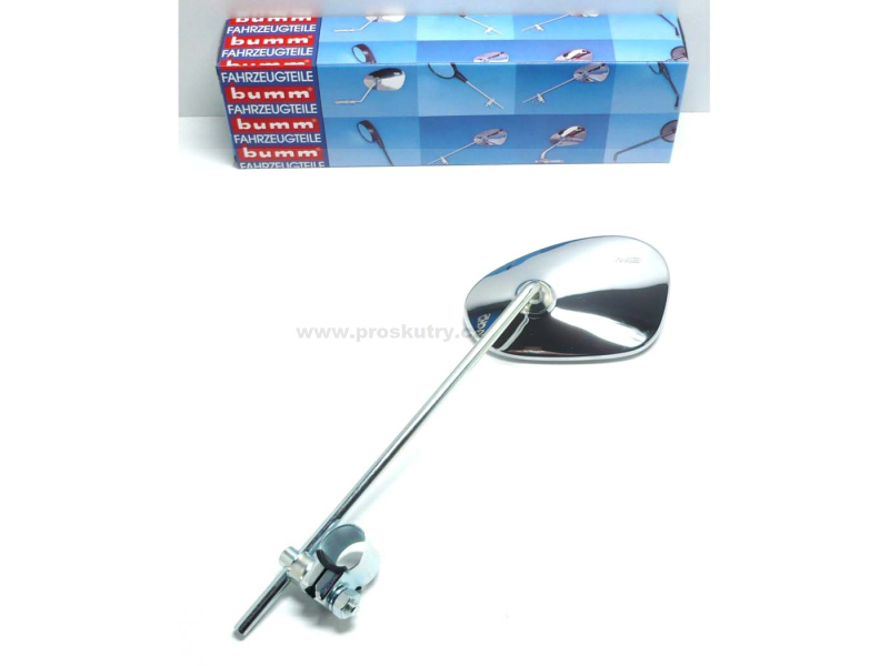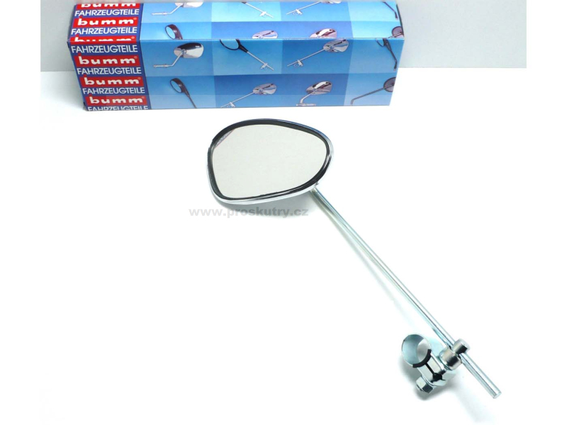Zrcátko Bumm s objímkou skleněnou plochou tyčí 7mm pro Zündapp, Kreidler, Hercules, Miele, DKW, NSU, Horex, Puch, Gritzner