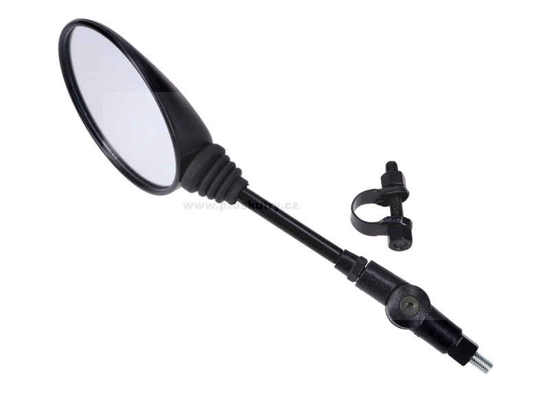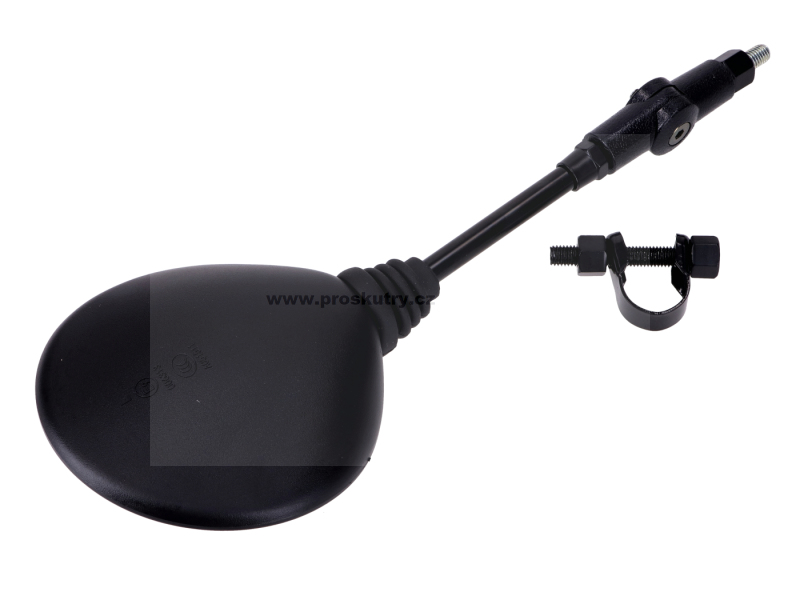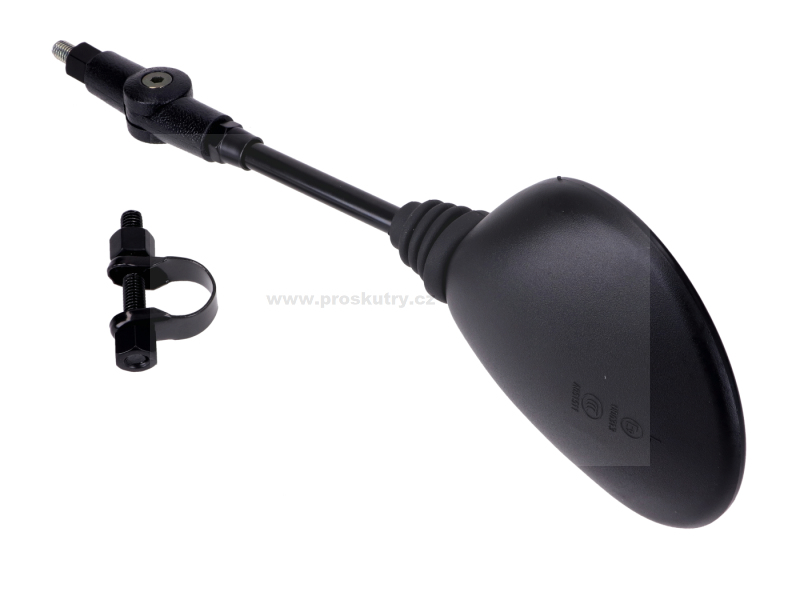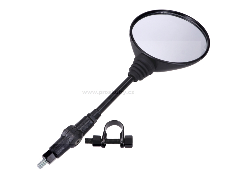 Skládací zrcátko s montážní svorkou. Univerzálně vhodné pro pravou i levou stranu. Pouzdro, nosná tyč a montážní materiál jsou černé.